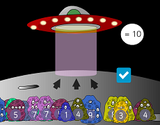 Alien PairsPut all the pairs of numbers that add to 10 in the spaceship as quickly as you can. It's fast! |