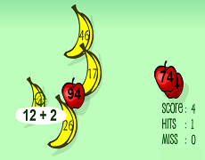 Fruit Shoot AdditionFour levels using numbers to 100. Shoot the fruit with the answer to the addition problem. Loads of fun splatting fruit. |