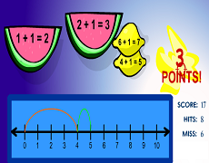 Fruit Shoot Number Line Addition GameShoot the fruit with the sum on the number line. Three levels of addition to + 9. |
