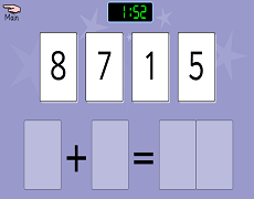 Sum Sense AdditionArrange the single digit numbers to solve the ADDITION sum. Be quick… it's timed! |