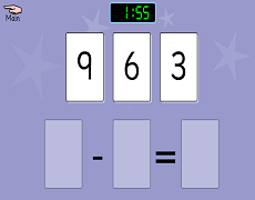 Sum Sense SubtractionArrange the single digit numbers to solve the SUBTRACTION the sum. Be quick… it's timed! |
