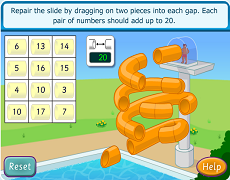 Waterslide AdditionBuild a water slide using your knowledge of numbers to 20. |
